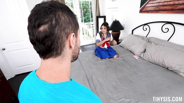 Description:Tiny cutie Violet is dressed up in an anime outfit that she got to try and make the guy she likes notice her but she tells her stepbro Duncan that it doesn’t work. Duncan offers to take some naughty pictures of her to send the guy. Duncan convinces Violet to take some pictures of her sucking his cock and soon one thing leads to another!