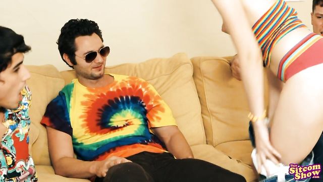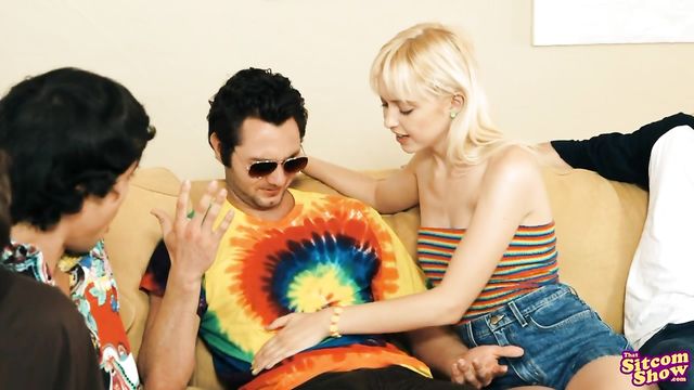 Description:The boys are all discussing Eric's newfound manhood when Laurie flounces in. She learns about her brother's sexcapades with Donna, but she's not going to yield her crown of queen slut without a fight. She goes ahead and turns to Hyde, peeling off her top right there on the touch and then continuing her stripshow. Whipping out Hyde's fuck stick, Laurie climbs on and rides him right in front of Eric with plenty of loud moans to punctuate each stroke. She puts on Hyde's sunglasses, then gets on her knees and strokes his dick until he busts a nut all over her face.Laurie isn't done asserting her dominance yet. Later, she corners Fez in the kitchen so he can be her next conquest. Once again Laurie finds herself in her favorite position, down on her knees with her tits hanging out and her mouth wrapped around a hard dick. Fez gets to tap that ass from behind as Laurie leans over the counter and lets him go to town until he's ready to finish with a load of cum on her ass.Completing the rounds, Laurie finds Kelso in Eric's bedroom and makes her move. Kelso has no problems letting this mouthy blonde work him over with her mouth, and he loves the way she rides his fuck stick. When Laurie rolls onto her back, Kelso bangs her until she's filled with a creampie of cum much to her delight. At the end, the boys form their circle and let Eric know what a slut his sister is. Laurie finds them like that and makes sure Eric knows that he will never be the queen slut of the Foreman household.