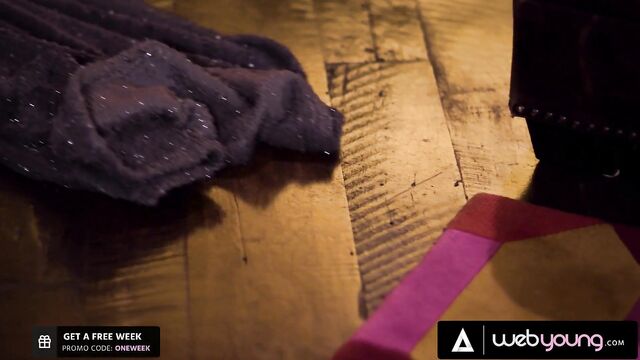 Web Young featuring Scarlett Mae and Eliza Eves's pussy licking dirt