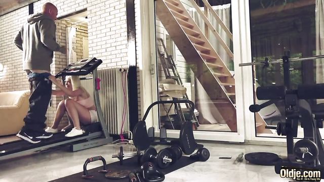 Description:What looked like a quiet day at the gym for this old man, ended with hard fuck, master blowjob and cum eat in a hot old and young porn video; staring beautiful teen Arteya and her much desired Oldje, we present a masterpiece of old man fucking young girl. This hot young girl is dick addicted and she would not miss a chance to seduce an old man just to satisfy her horny young pussy. She teases and masturbates her tight pussy letting oldje admire her sexy young body while he keeps exercising in the gym. All she can think of is how hard would the old man fuck a young girl, so she quickly undresses him and performs a master blowjob. The old man is playing with her nipples and then licks her greedy twat making her moan of pleasure. Old man is fucking young girl doggy style, penetrating hard her horny twat sexercizing. In reverse cowgirl position she bangs and rides his old dick jumping on Oldje while he plays with her tits. Any place or machine in the gym is perfect for the old man to fuck young girl so he fucks her on the running band, missionary style. Her juicy thick lips and her greedy mouth love the taste of old cum so she does not stop sucking and rubbing his old bone until he cum in mouth and she eat old cum.