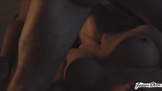 Description:The scene starts with James Deen lying in bed with a beautiful lady, as the camera rolls down, showing the lady's beautiful legs wrapped on James Deen's body. Later, the lady wakes up in the middle of the night with no one on the other side of the bed. She walks to open the door to witness three naked ladies facing the wall. Perplexed, she moves around the house, looking for James Deen, with nothing on, her gorgeous breasts sway with every step. She reached a room full of beautiful naked mannequin women. Frightened, she ran until she reached a room and came across James Deen standing naked with two women knelt down and sucking on this hard cock. The girls take turn sucking on James Deen's cock while some of the precum can be seen on their chins. One lady excitingly sucks his dick; the other gives James Deen's balls some good old loving. James inserts three of his fingers on one of the woman's mouth, playing with his precum mixed with saliva. James Deen then gives out a moan as he fucks both women’s mouth alternately. James Deen then lays one woman down while he sits on her face, the woman nibbles on James' balls, while he returns the favor and fingers her wet pussy. The other lady keeps on sucking James's cock like a baby on a mother’s bosoms. He turns the women around and takes her from behind while the woman on the bottom licks Jame's balls. He then turns to the woman laying down and fucks her good, with her left leg on Jame's shoulder. The woman enjoys every thrusting force. She looks so beautiful with staring at James. Both ladies lay side by side with their legs high up in the air, waiting for James to lick their wet pussy. James then guides one woman to go down on him while he fucks the other one. Both girls line up on all fours as he takes them from behind, doggy style, slapping their ass with such malicious intent. The threesome goes on with all three moaning a good song. James lies on the couch while a woman takes on him from above; she rides James Deen reverse cowgirl style. The ladies knelt in front of James taking his full-length cock on their mouths alternately until he came. This was a good day.