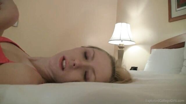 Description:Yes I did check her ID several times. Kimberlli is barely 18 and looks it. I pick her up a few blocks away from her parents house - not that it really matters because her mom had already found out...and told her dad. I should feel sorry for Kimberlli but instead I just think: how the hell do you let your parents find out about this? If your 'rents are snooping in your phone and emails, hide that shit. I'm thinking she *wanted* to get caught. I mean, what's the ultimate act of sexual rebellion against parents? To do porn, of course. But nevermind all that for now. You're glancing at the thumbnail pics below and can tell there's some major stuff going down with our tiny ASU freshman. She is looking for male approval so badly, it takes me literally less than ten minutes to get her to suck me off while we're driving to the hotel. Since this was so easy I stop the car at the hotel parking lot and tell her to let me fuck her right there in the alley behind the garbage dump. Her tiny body makes my cock look huge so that's always a plus. LOL. You can tell she has a low self esteem, she moans and screams like a pornstar because that's what she thinks a girl must do to be accepted by us guys(remember, pornstars have become role models to a lot of girls of the recent generation). I wish she'd shut up but she's such a great fuck, I don't want to spoil the mood. At least her little snatch gets wet, meaning she's not entirely opposed to being fucked in a back alley by a stranger. So far so good. Speaking of her tight snatch - Wow! It's like fucking a half-inch rubber hose. The girl is TIGHT. So what's about the most evil thing I can do in this case? Use my gigantic dildo (the one with the chains) on her. Yeah, see how well that goes over. But before I go hardcore on her I spend a lot of time stretching Kimberlli's pussy to make sure I don't get sucked into potential daddy-hood too soon when I fuck her, if you know what I mean. All that fingering and pussylicking didn't really help, Kimberlli is still super tight. This girl has not had a lot of sex before, regardless of what kind of stories she's telling us in the beginning. Lost her viringity at 14? Yeah, with a frozen hot dog maybe. To make a long story short - this one's up for ANYTHING. It's almost too easy but then again she's pretty good at what she does for her age so I don't mind. Asslicking, deep throating, anything goes. There are times when her eyes well up a bit, and her facial expressions tell you some things are way too hardcore for her - but she does 'em anyway. Kimberlli is looking for approval, no bones about that. She even says all the right things, like when I ask her what the best part was, she says she loved the cum facial. Well, she did have a genuine smile on her cum covered face in the end, but her favorite? Hmmm...who knows, maybe this young lady is indeed just as perverted as you and me. You be the judge. - Steve