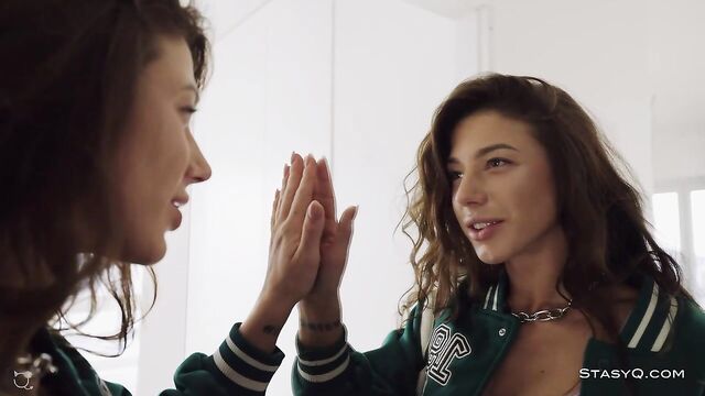 Description: Eva-Elle presents a stunning combination of sparkly fishnets, a plaid skirt, and long locks that emphasize her facial beauty. This StasyQ model infuses a dose of naughty into Video Release 532, and Said Energizer is there to capture it with his superb camera. The playful brunette starts seducing right after dawn, and the morning light makes her purple fishnets sparkle even more, further emphasizing the vixen’s glowing skin and spectacular curves. Blue platforms make the stunner look even more alluring, resembling a mischievous college girl. A big tattoo on Eva-Elle’s arm reveals that there is more to her than a gorgeous smile. She is a bombastic seductress who would do anything to get your attention, and the cozy room is the perfect setting for her wild session. Eva-Elle boasts small but perky breasts, long legs, and a tiny waist. You will fall in love with this fit and charming beauty.