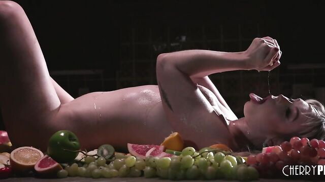 Description:Cherry of the Year Lilly Bell is spreading the sweetest fruit of all! After she gets her own taste of her juicy fruits, she offers you a treat from her own body. She lays bare, getting herself covered in sticky juices, hoping you’ll want a taste of hers when she’s through.