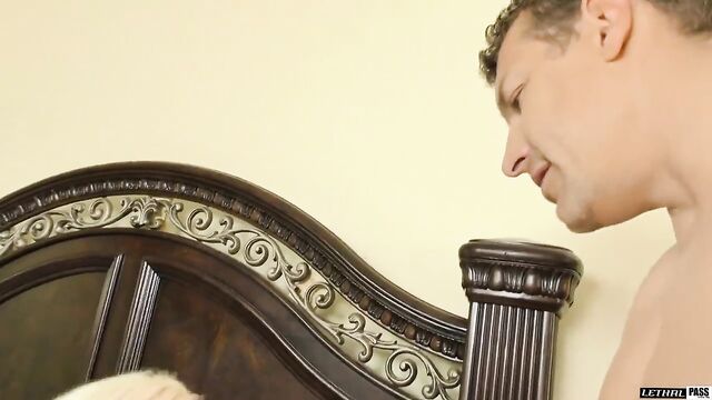 Description:Hot blond bella jane is feeling horny and lays out on the bed showing off her legs in a black swmisuit. She gets excited and plays with her sweet shaved pussy. After she gets off the phone she pulls out her vibrator and starts to slowly buzz her clit. When her guy shows up she is eager to suck his cock and soon gets taken out of her sexy outfit to show off her round tits as she eagerly works to please. With her body working hard to please and her mouth and lips running over the shaft she soon brings him to cum all over her. She is eager to swallow cum and smiles up as she pleasures her man.