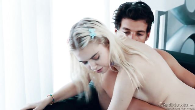 Nude blonde Chloe Cherry getting fucked on the leather couch
