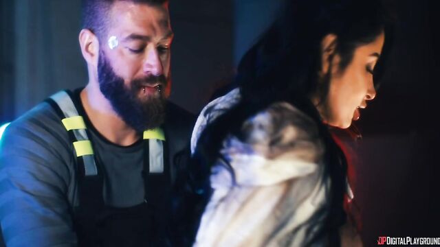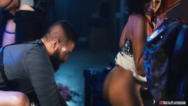 Description:As their new passengers, Jaz (Emma Hughes) and Hudson (Danny D), fight over a gun, captain Dex (Xander Corvus) beats a hasty retreat through Overspace from loan shark Krieger. Unfortunately, The Tank is fired on and the ship's computer goes down, leaving them lost in space... but Kami (Tru Kait) gets an idea: hook up pleasure hologram Trix (GeishaKyd) to the ship. As Trix talks Kami through some complicated feelings...and they lick each other's pussies...while Jaz hangs around, Hudson and Dex beam down to a nearby planet to try to find some spare parts. The guys are ambushed by beautiful Zuri (Romy Indy) and Nyssa (Clea Gaultier), who are more than willing to trade... if they can get their hands on the guys' parts!