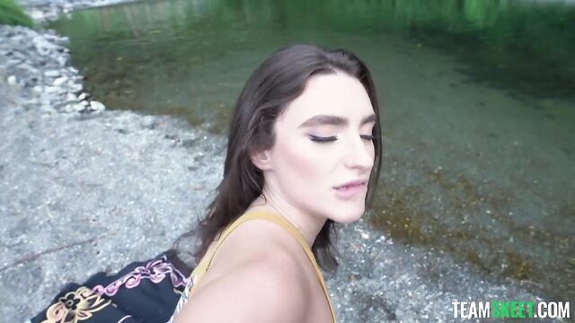 Description: Ike is out hiking when he stumbles upon gorgeous babe Mia sitting by a lake. She tells him that she had a fight with her boyfriend and he actually left her by herself so now she might as well hang out with Ike. Mia is in a naughty mood so she starts coming on to Ike until they finally fuck in the wild!