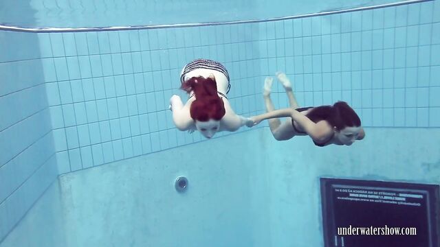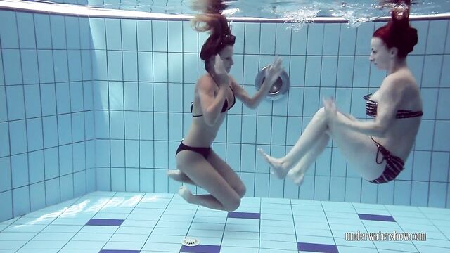 Underwater Show featuring Lucy and Katrin's natural tits action