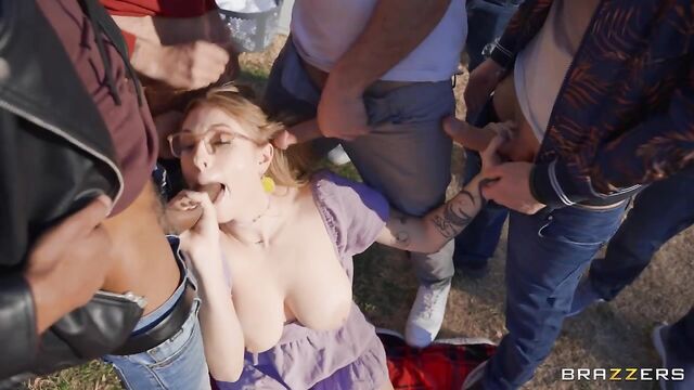 Description:At first glance, Angel Youngs may seem like a fairly innocent girl next door. Glowing smile, laid back attitude… But you know what they say; never judge a book by its cover. Underneath those conservative clothes is a cock hungry nymphomaniac that has been locked away for an entire year. Over three hundred days of being unable to grope her huge, natural tits. Play with her tight, wet pussy lips. Have tendrils of drool slide off her tongue onto the pulsing head of a throbbing, eager cock. Well, Angel isn't going to wait any more. She knows what day it is. She's planned this for months. When the siren goes off, Angel will have surrounded herself with men. And she can't wait to devour them all.