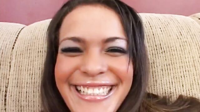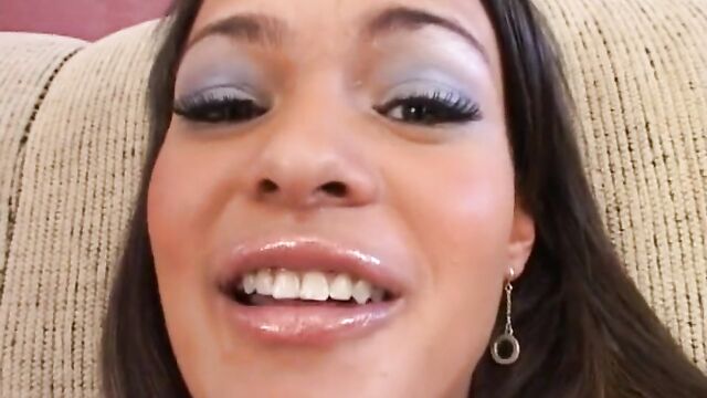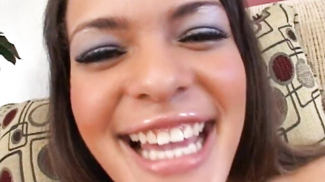 Description:Lovely Cadence Sweet wears shimmering lip gloss while smiling into the camera as she lifts her little black skirt and tight pink top while teasing her soft cotton panties. After removing her white bra and underwear she lays back on a sofa and spreads her sexy legs as she begins to massage her smooth pink pussy. While touching herself she grabs her clear glass dildo and begins sucking on the head, covering it with her saliva before she penetrates her cock-hungry pussy, pushing it in and out of her body while teasing her clitoris until she finds her climax.