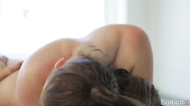 Description: Racked Russian and all-natural brunette Marina Visconti stars along side Danny Mountain in this very sensuous edition of EroticaX. Their presence in front of the camera is undeniably alluring and new-comer Marina will not leave you wanting. Her perfect 34DD breasts are blindingly beautiful and we envy Danny for having had the chance to bury himself in them.
