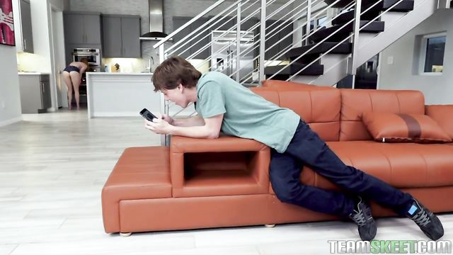 Description:The sexy red haired lauren phillips was doing some chores around the house dressed in some super skimpy clothes. Just as she was about to start the dishes, her sons friend Rion came over awaiting her son. She had him chill on the couch until he arrived. Rion noticed how she was dressed and had to savor this. He snapped some pics of her ass while she was cleaning the oven. This was going straight into the spank bank! Little did Rion know Lauren was wise to his creepy ways. She had him check something out under her sink. He ended up getting stuck which made this the perfect time for her to swipe his phone and those creepshots he took. He would also have to learn his lesson. Lauren punished him by sucking his cock and riding it. She even made him eat her ass after he got unstuck. This is one mommy you don’t want to mess with!