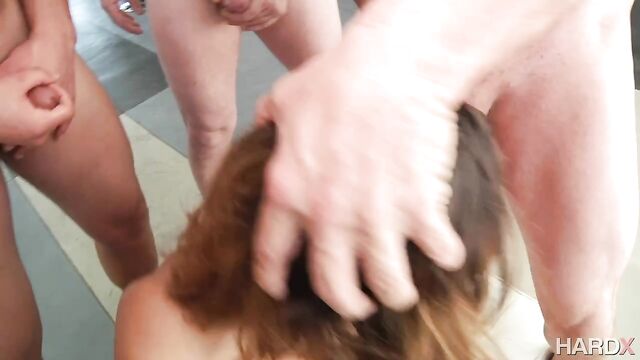 Description: Naughty Keisha Gray is about have her first ever blowbang. This big tit beauty wants to have these 5 hot guys ram their dicks deep down her mouth. She takes turns sucking each of them off and even gets her wet pussy licked. Keisha is enjoying every sensation and wants a face full of cum from each of these guys. Keisha gets her wish.