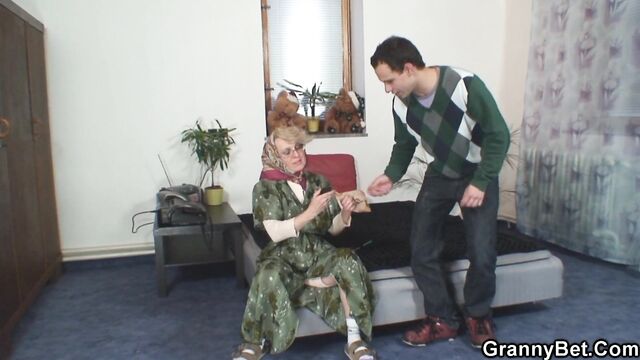 Blowjob scene with well-proportioned bird from Granny Bet