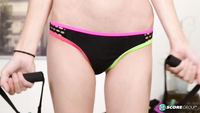 Description:Ava is dressed up in a tiny workout outfit that looks more like underwear than athletic apparel. She keeps her body petite and tight by working out, but today she's not feeling it. She'd rather give her pussy a workout. First she warms it up by opening and closing her legs and stroking her slit. Once her clit is throbbing and her meaty lips are sticky with her girl goo, she goes to town finger-banging her little hole. Maybe she's thinking about fucking her trainer or sucking cock in the gym sauna. But one thing is for sure, you'll work up a sweat jacking to this tiny redhead.