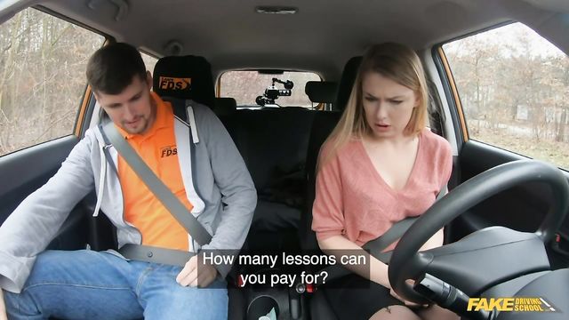 Description: I had a blonde student named Lucy Heart in my taxi today. She told me she had done 15 lessons so far, so I quizzed her quickly about the mirrors, seat belt, and pedals. When we got to driving, I figured out fast that she would need more lessons. She was uncertain behind the wheel, and not very competent with the pedals. I told Lucy that at her skill level, she would need at least forty more lessons. Lucy panicked: she couldn't afford that many lessons. I wouldn't pass her without them, so she asked me if we could work out a deal, reached over, and started stroking my cock! When she pulled out her perky, little tits, I agreed to her offer. Her hands were cold, so I told her to give me a blowjob. She sucked my cock enthusiastically, then Lucy took it in her pussy reverse-cowgirl style. I fucked her tight snatch doggystyle, then missionary, then I pulled out, and came on her bush!
