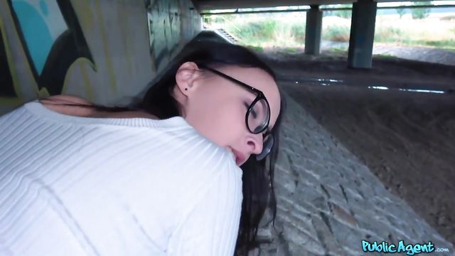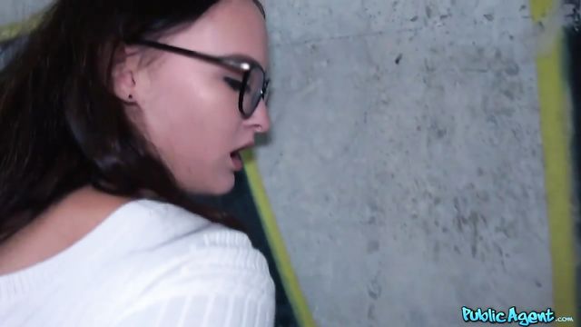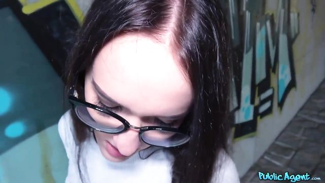 Teenage nerd Sasha Sparrow gets fucked deep while in public