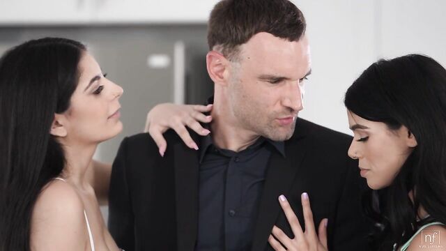 Description: Working together, Angel Gostosa and Harley Haze are supposed to get dressed up for a date with their sugar daddy, Alex Legend. They just don't have anything to wear, though, and they've both used up their monthly allowance. In the face of their problem, Angel hatches a plan to coax Alex into taking them shopping.Dressing in sheer lingerie, the girls come down to the kitchen where Alex is waiting. Alex tries to tell them that he's already given them their allowance, but they rub themselves all over him and paw at his dick while wheedling for more. Eventually Alex agrees, at which point Angel tells him to come with them so they can show him how appreciative they are.Leading Alex to the bedroom, Angel and Harley pounce. They get Alex onto his back and pop his hardon out to play. Working together, the girls tag team that delicious dick with their hands and mouths working in tandem to get their party started in earnest.When it's time to move on to the actual fucking, the girls share so nicely there, too. Angel gets on her knees with Alex fucking her from behind. Meanwhile, she buries her moans in Harley's snatch as she eats her girlfriend out.Scooting forward when it's her turn, Harley lifts her legs to offer Alex full access to slide on home into her coochie. He takes her nice and deep, just the way Harley likes it. Angel waits to make sure Harley is enjoying, then crawls on top of her friend's face to ride the tongue.Riding is just what Harley wants to do, too. When Alex lays down, Harley gets her wish as she impales herself on his hardon and rocks her hips. Angel climbs aboard Alex's tongue she he can fuck her with his mouth even as Harley rides.Rolling over to spoon with Angel, Alex reenters her. He sets off a nice fast rhythm, causing Angel to throw her head back in delight. Harely chooses that moment to place her pussy in licking range for Angel, giving her something more productive to do with her mouth. As Alex pulls out to blow his load all over Angel's muff, Harley is right there to lick it all up and give Angel a taste of the goods, too.