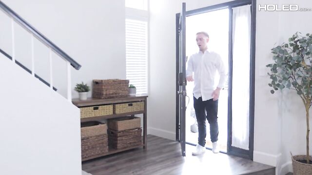Penelope toys her ass with a butt plug while doing laundry. Her moans of pleasure brings her boyfriend to investigate.