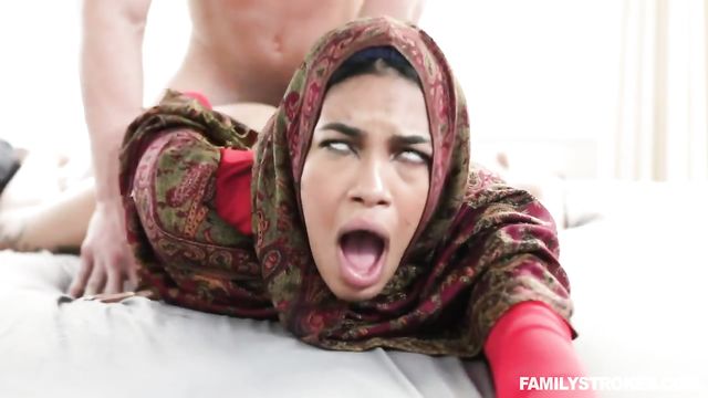 Description:My sexy stepsister, Maya Farrell, loves her culture – just look how hot she is in her hijab. But when she finds out that she has to go through with an arranged marriage, she’s heartbroken. I want to make her feel better about pleasing her new husband for the first time, so I offer to show her the ropes when it comes to sex. She tries to practice on her own, snapping a few dirty pics and sending them my way. Once I see her virgin body, I rush to her room and pound her doggystyle. Too bad our dad catches us and whips out the belt!
