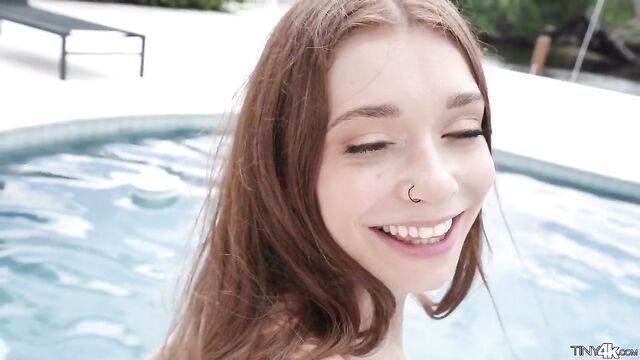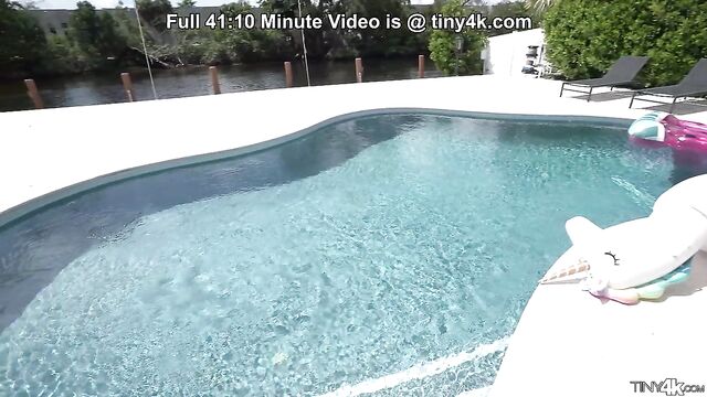 Jessica strips down and gives a sexy tease in the pool. Afterwards, she heads inside to get her pussy pounded by a big dick.