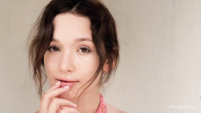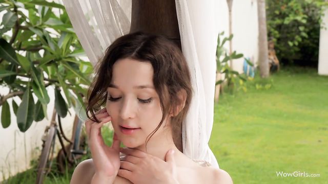 Sensual brunette with an innocent look Ellie Leen demonstrates her body