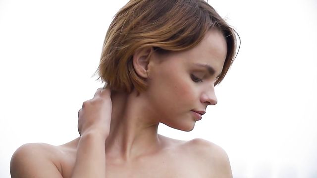 An innocent young hottie with small tits Ariel A poses naked outdoors