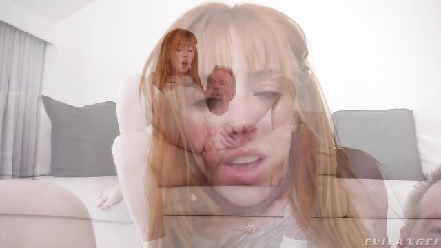 Description: Young redhead Madi Collins wears tiny jean shorts with black stripper heels and a shirt with filthy fucking message. The defiant cutie teases and strips through a sexy intro, spreading her rear cheeks to reveal a large butt plug wedged in her rectum. Madi welcomes co-director Mark Wood with a wet blowjob, choking on his thick prick as he fucks her throat. She removes her anal toy, amazed when Mark's meat penetrates her butthole. Co-director Francesca Le films the debauchery, cheering Mark and Madi on from behind the camera. Intense rectal reaming ramps up when Francesca joins the action: Mark sodomizes Madi while the ladies share lesbian cunnilingus. Madi rides cock and poses her gaping rectum while Francesca coaches, rimming bunghole and giving nasty, ass-to-mouth head. Mark finally finishes Madi off with a creamy cum facial. She laps up his sperm and says, 'I'm such a messy girl,' while the goo oozes down her freckled cheeks.