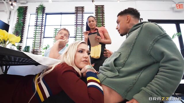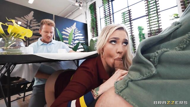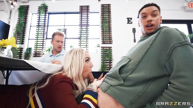 Description: Kendra Sunderland, Air Thugger, and Van Wylde socialize at a diner, coaxing each other into pervy shenanigans. What begins with Kendra snapping a raunchy under-the-table pussy pic quickly ramps into sluttier “under the table" activities (blowjobs, spit roasting — oh my!) until a suspicious waitress almost catches Kendra with Thugger's cock in her mouth (and Van Wylde's in her pussy). Fortunately, the overworked/undersexed waitress needs a change-up in her day and closes the restaurant, allowing the threesome to continue their group session. Thugger and Van Wylde switch off, drilling Kendra's mouth and pussy, back and forth before each smacking their fat cocks against Kendra's tits (one of each), smattering them in cum. The dismayed waitress returns to find gobs of jizz and Kendra's glistening nips on the table — all in a day's work! The pervy trio pranks on.