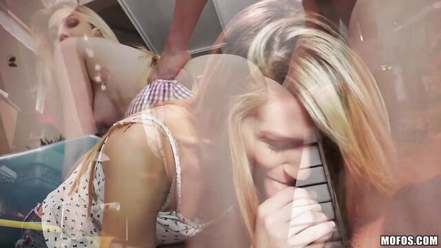 Description:This horny teen is all grown up and looking to fuck. When her father's friend comes over, she seduces him and sucks his cock with her old man sitting at the table with them! They sneak off to the garage and she gets her tight pussy pounded.