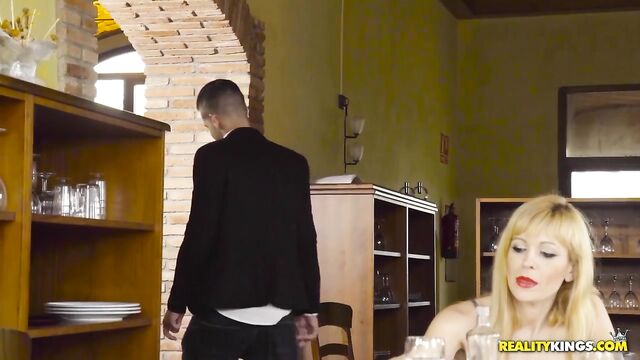 Description:Blondie Fesser was pissed off she found out her boyfriend cheated on her and was fed up with his dishonest ways. She was completely distracted at work and finally figured she'd just fuck the next guy she sees. In walked Alberto with his girlfriend and little did he know he had just hit the pussy lotto. While his girlfriend was looking over the menu she started seducing Alberto. She slipped him a note telling him to meet her in the bathroom. Alberto excused himself from the table and took full advantage of the situation. He left his girlfriend waiting while he banged Blondie to his heart's content.