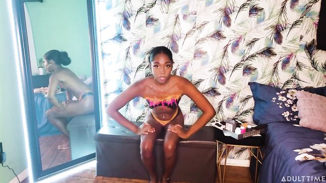 Beautiful ebony chick Amari Anne rides on a big sex toy
