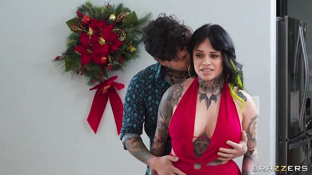 Description:XWife Karen’s boyfriend/boss has dumped and fired her on Christmas Eve. With nobody to spend the holidays with -or fuck- the situation's left her hating Christmas, until her ride share driver, Small Hands, takes her to his home and introduces her to his hot tatted wife, Connie Perignon, for dinner. Karen is pampered with a hot shower while Connie and Small Hands sneakily peep on her, and has a sexy dress laid out for her to wear. She joins them in the dining room, where Connie is spread out on the table: dinner is served! Karen can't believe her eyes -or luck- and can’t pass up the opportunity to have a holiday threeway with these pervy married swingers!