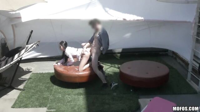 Description: The drone hunters got some new voyeur footage of the sexy Raven Bay sucking and fucking a fat cock up on the rooftop. Dude took her out there to appreciate the view, but little did she know that the drone was waiting to get that sweet amateur video!