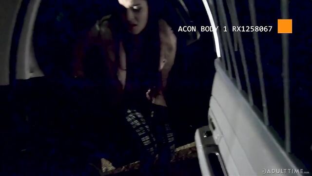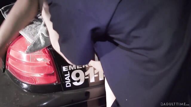 Description: Veteran officer Carvelli (Zac Wild), and his partner, rookie officer Parker (Derek Davis) drive to a call of a girl shoplifting at a local mall. When they drive up to Katya Rodriguez, a girl walking down the street who matches the description they were given, there is a brief struggle and they arrest her.As they drive her to the station, Katya whines incessantly, loudly complaining that she is 18 years old, she KNOWS her rights and they CAN'T do this to her! When Officer Carvelli gruffly tells her to shut up, she mouths off and insults both officers. Don't they know who she is?? Who her DAD is?! Officer Carvelli tells his rookie partner that he's going to see a lot of trash like this and that it will definitely take some getting used to.As the insults continue, Officer Carvelli seems to be on the verge of losing his temper. Finally he's had enough and turns the car around, saying that they're not going to the station anymore. Officer Parker is a little thrown off, telling the veteran that this isn't standard procedure. Officer Carvelli answers that the rookie's going to have to learn that things don't always go by the book.They drive to an isolated outdoor location. Katya looks really freaked out now and is loudly demanding to be told what is going on. Turning to Officer Parker, Officer Carvelli tells him that 'The only way to get bitches like this to shut up is to stick something else in their mouths.' And he has JUST the thing, the veteran adds with a lusty grin.Officer Carvelli tells the girl that unless she wants to go to jail for shoplifting and resisting arrest, she's going to suck his dick. Reluctantly, she agrees. Officer Carvelli pulls his cock out and she hesitantly slips her mouth around it as Officer Parker watches in shock.Looks like Katya will do whatever it takes to get out of the trouble she's in, INCLUDING sucking the long dick of the law...