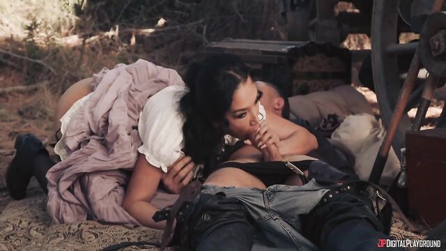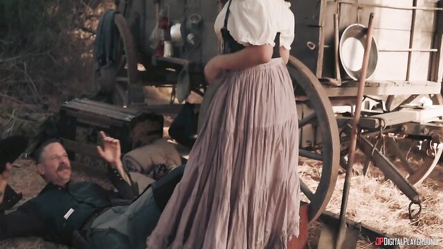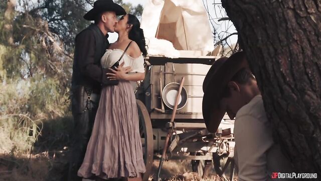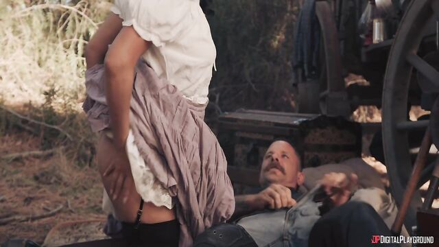 Description:The lure of gold has always attracted those down on their luck... and the kind of outlaw who makes their own luck. As hopeful prospector Shawn and his wife Kimmy (Vicky Chase) make camp on their way to the gold fields, they're joined by a mysterious stranger on horseback looking for a meal. But maybe he's not such a stranger to Kimmy! In fact, Charles Glanton (Scott Nails) is her old partner, and she's been waiting for his return to steal Shawn's gold. She ties up her mark and fucks Charles right in front of him, but the lure of gold will always lead to betrayal...