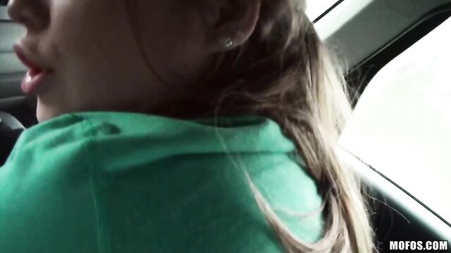 Description: The lucky bro in this clip didn't have to work very hard to convince his passenger to suck his cock. Cute little teen slut leaned over and gave him roadhead until he pulled over and nailed her. Then guy popped a fat load in her mouth.