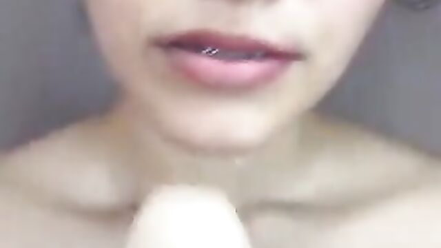 Passionate brunette sticks a dildo deep in her shaved pussy