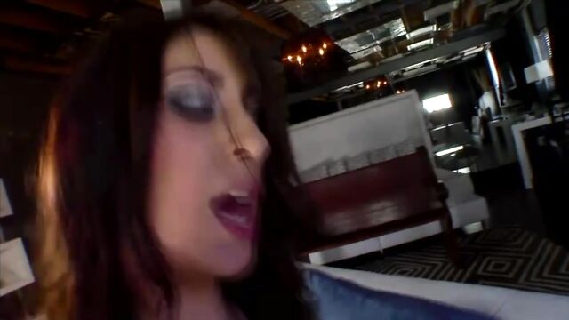 Description:Seductive brunette teen Abby Lane and her fuck buddy engage in hardcore pounding in this raunchy porn scene. She lies down on the couch and got her tight cooter crammed with his rock hard schlong. He slams her pussy hard making her moan in intense pleasure.