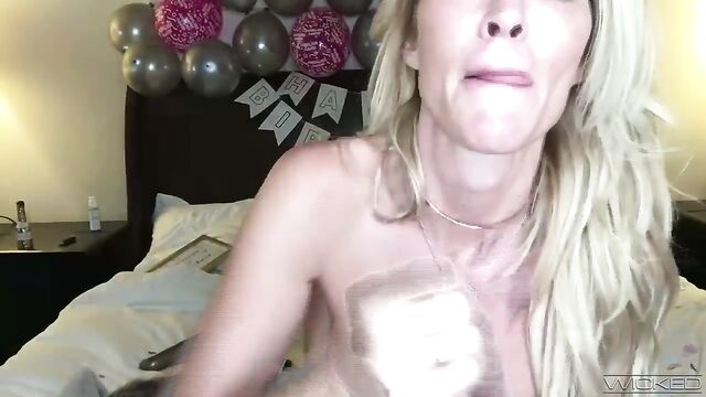 Soloing webcam model Jessica Drake is sucking a huge dildo