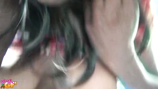 Description: Tiny Ebony was driving with her boyfriend to her house but she was already way too horny. There was no way she would wait until they got home. Slowly she started to caress her breasts. Then she unzipped his pants and started to suck his dick until he stal