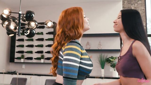 Description:Sinatra Monroe wants to surprise her girlfriend Ameena Green with a dildo, but instead it ruins the mood! Sinatra decides to use the toy herself later while she's alone. But when Ameena gets home unexpectedly and wants to fuck, Sinatra has to hide that there's a bright pink dildo in her pussy! When Ameena finds the toy, she decides to see what the redhead likes so much about it, starting with sucking it before finding out what it feels like inside her. They take turns cumming on the toy, then 69 and trib, and Ameena thanks her GF for proving her wrong.