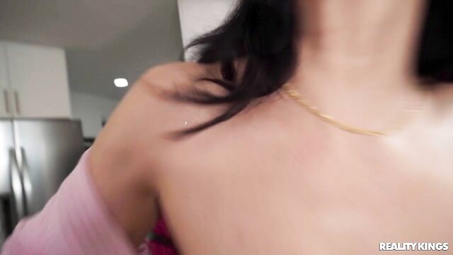 Description:Stepmom Little Puck is fed up of her stepdaughter Selina Bentz making out with her boyfriend and leaving dirty laundry--even jizz-filled panties--all over the house, but when she finds a dildo stuck to the bathroom wall, it's the last straw. Puck tracks down Selina in the kitchen and makes her suck the toy, then fingers the college student and stuffs the dirty thong in her pussy. Selina gains a new respect for her stepmom as Puck demonstrates just how to suck the dildo, then the hotties lick each other before Puck fucks Selina with the toy.