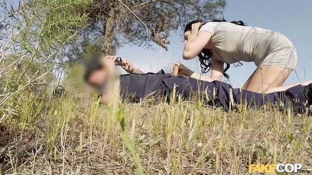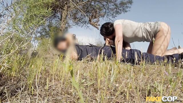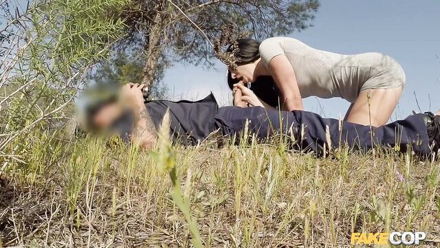 Description:Saw sexy MILF Sophie Garcia walking in a tight little dress through a known dogging area, and decided to pull the beauty over to see what she was up to. The little tart was saucy from the start, asking me if I was a real cop and commenting that my outfit was shitty! UK girls have no filter, do they? I asked the cheeky babe which was it: was she walking her dog, or going dogging? Then I asked if she had any panties on. You know, as part of my investigation. Sophie was obviously excited to flash me her pussy. Of course, then she needed to see if I was also going commando. And like with all women, once she saw my incredible truncheon, she was eager to get it in her mouth! Then, like something out of a bad movie, the real cops came! We escaped to the hills, and the dirty dogger finished deepthroating my cock until I blew a massive load in her mouth. Then we got the fuck out of there. Pro tip: Sunday is the worst day to go dogging!