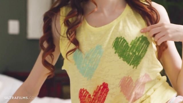 Redhead hottie Sherice stimulates her accurate snatch in the bed