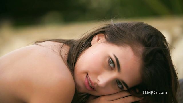 Sensual innocent brunette Katrine Pirs demonstrates her gorgeous body