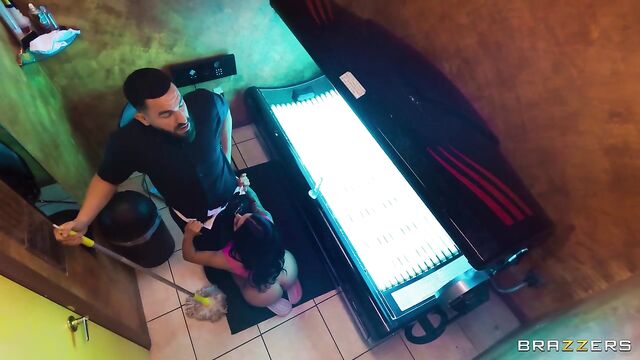 Description: The Official Egypt has booked a tanning bed, but she has more than tanning on her mind. She uses a dildo to fuck her pussy while she's on the machine! When a janitor (Peter Green) interrupts her pervy activity, Egypt pulls him into the room and convinces him to fuck her. They fuck in the private room, then in a locker room, while dodging nosy patrons. When The Official Egypt goes out, she gets her money's worth!