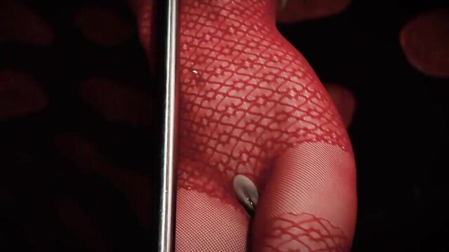 Description: Gorgeous Czech blonde Nathaly Cherie is walking along a street in the rain when she spots a sign on the door of a bar: 'Dancers wanted apply within.' She heads inside. Cut to her audition for an anonymous man, which sees her squatting down next to a stripper pole, dressed in a sheer, red-lace body-stocking, with spike-heeled platform shoes and scarlet lipstick. As the music begins, she caresses her full, pert breasts and grinds them and the front of her body against the pole. As she turns to face the camera we see her suit is split at the crotch, exposing her naked, shaved pussy along with a glimmer of a Christina piercing at the top of her slit. She gyrates, with her back to the pole, splaying her legs and showing off her glorious body full-frontal, then turns around to display an almost-transparent mesh panel over her butt, with the split-crotch leaving her pussy and asshole bare from the back. The man claps and gestures, and Nathaly peels down the top of her suit, exposing her breasts and prominent, brownish nipples. Then, she really puts on a show - she sprawls back on the floor with one leg in the air and plays with her pink. She rubs her clit with manicured fingers and pumps one, then two, in and out of her pussy. Moaning and sighing, she plows her snatch then licks a finger and slides it in her ass before double-penetrating herself. Switching position she crouches, doggie-style, then uses the fingers of one hand to tease her pussy and the other to probe her asshole. As her orgasm approaches, we see a close-up of her ecstatic face, then a full body shot as she cums, whimpering in release. As her orgasm fades, she continues to stroke her slit, and smiles at her audience of one. He applauds enthusiastically and she gives him a thumbs-up before leaving the stage. As the movie ends, we see her leave the building, triumphantly tearing down the 'Dancers Wanted' sign on the way.