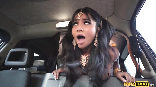 Description: I picked up an absolute stunner in the Fake Taxi today. Yasmina Khan was dressed in a beautiful sari, and the raven-haired babe told me how she doesn’t want to get married because she can’t stick to just one guy! After joining Yasmina in the backseat, she was shocked by how big my dick was, and soon she was slobbering it up in a sexy blowjob! Next, the tattooed nymph spread her legs and showed me her wet pussy, and then she flashed her big, pierced titties. I banged Yasmina in missionary before she climbed on top to ride my rock-hard cock cowgirl-style and reverse, which gave me a fantastic view of her thicc, juicy ass. Following some spooning in the back of the cab, I fucked the filthy mare in doggy position, and then she swallowed every drop of my cum!